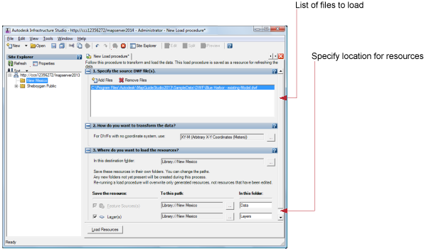 A new load procedure is displayed to the right of the Site Explorer. It contains a list of the files to load. You can drag other files into this load procedure.