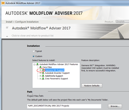 Quick launch has been added to Siemens NX10 so that you can launch Autodesk Moldflow Adviser from within your CAD system.