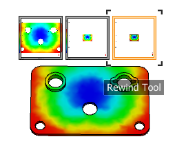 As you use the navigation tools to reorient the view of a model, the previous view is saved to the navigation history. The navigation history holds a representation of the previous views of the model along with a thumbnail. A separate navigation history is maintained for each window; it is not maintained after the window is closed. Rewind navigation history is view-specific.
