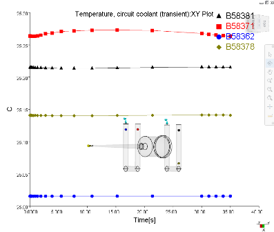 The Temperature, circuit coolant (transient) result shows how the temperature of the coolant in the cooling channels changes over the duration of the cycle.