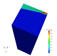 The effect of using *ADPM is shown in the figures below, along with the associated single CPU run times. Without using *ADPM, the mesh has excessive resolution to resolve the problem. Using the default value of 50 reduces simulation time by 82%. Changing the value of *ADPM to 100 generates a further reduction of run time of 31% over the default value. A similar reduction of time is achieved by using *ADPM of 1000, but note in the fourth figure that thermal aberrations occur. These are due to the improper integration of heat over the part.