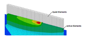 This DDM option switches elements from inactive to quiet on a layer by layer basis. The time of layer activation is set to the start of deposition of each layer minus r3. Then, Local Simulation searches which elements belong to each layer based on their z coordinate. The elements are activated when contacted by the heat source.