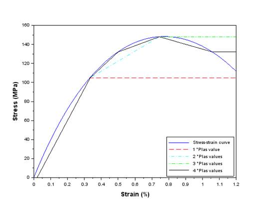 Approximating the stress-strain curve using 1-4 values in the *PLAS card