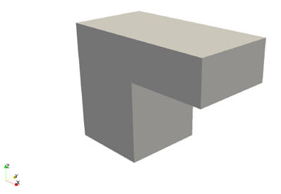 An Inconel overhang geometry with support structures is built in a powder bed system. The layer height is 0.04mm. The part geometry is imported in the analysis through an STL file, the support structure is imported from an CLI file, and both are automatically meshed within Local Simulation. The support structure for this build will be created by the user in this example. The build plate is modeled to be 12.7 mm thick using *DDM! and extended 10 mm in the 4 XY planar directions using *SBXY. The time to deposit layers is calculated using the *PBDL card. The bottom of the build plate is fixed using the *FSUB card. The *FSUB card will also simulate the release of the build plate from the machine after the deposition process is complete, but before the part is removed from the build plate. Support structure failure is modeled using the *UTSR card given a value of 1050 MPa. The part STL, is shown in Figure 9.1.