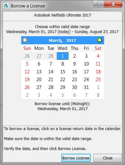 Click the date on which you expect to return the license to the network, then click Borrow License.
