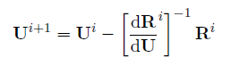 where the superscripts i and i + 1 refer to the previous and current iterations. Equation 1 is applied until an appropriate norm of the residual R is less than a specified tolerance. Each time step takes the solution from the preceding time step as an initial estimate. Additional details pertaining to the formulation can be found in "Model verification, validation and error analysis" topic.