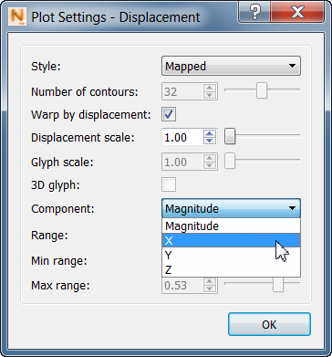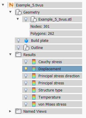 ) one of the Results, such as Displacement, Structure type, Temperature, or a Stress display. Results appear after solving a simulation. For any of the Geometry or Results items, you can right-click for access to render properties and other options.