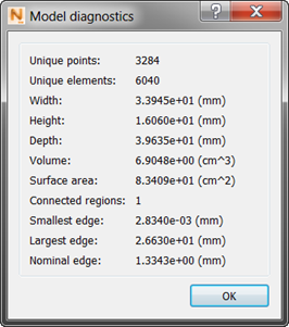 Click to review dimensions and other attributes of the model, as shown in the following example: