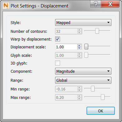 Plot Settings to open a dialog in which to control how the displacement or temperature gradient is graphically represented in the animation.