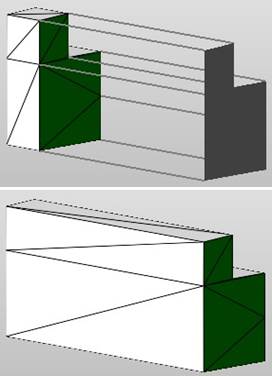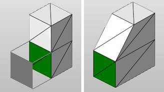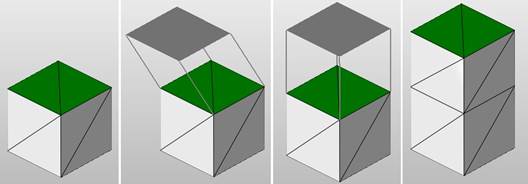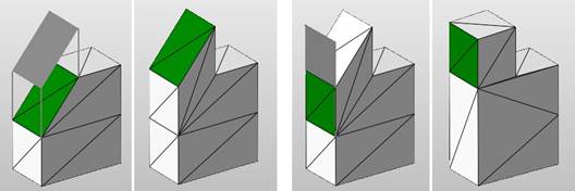 Similarly, by double-clicking on a triangle edge, the extrusion is aligned along the edge, switching the direction with every double-click. With the button Apply in the tabsheet, the extrusion is performed. The chosen triangles are moved according to your settings and new triangles are inserted to connect the original part with the new triangles.