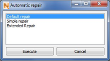 The field below shows which repair functions are performed in which sequence by the script. The sequence of the repair functions can be changed by clicking on one of them and moving it by drag & drop within the list. By clicking on the green tick next to a listed function, you can perform one function separately, and by clicking on the button with the red X, the function is deleted from the script.