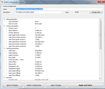 Each available material also has different build strategies to customize accuracy and speed. But you can also edit existing configurations or create new ones.
