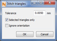 Optionally, you can ignore the orientation of triangles. If you do so, triangles with opposing orientation will be connected as well. If you do not tick this box, the software stitches only triangle edges with fitting orientation. In general, it is recommended NOT to ignore the orientation, in order to prevent the creation of non-orientable triangle meshes.