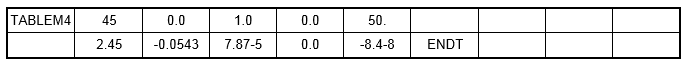 where x is input to the table, y is returned, and z is supplied from the MATi entry using the specific property value for the term being evaluated. Whenever x < X3, then X3 is used for x, and whenever x > X4, X4 is used for x. There are N + 1 entries in the table. No warning messages are issued if table data is input incorrectly.
