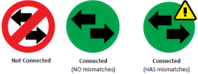 You can tell at a glance whether a connector is disconnected, connected, or connected but with mismatched properties. The appropriate status icon appears next to the connector: