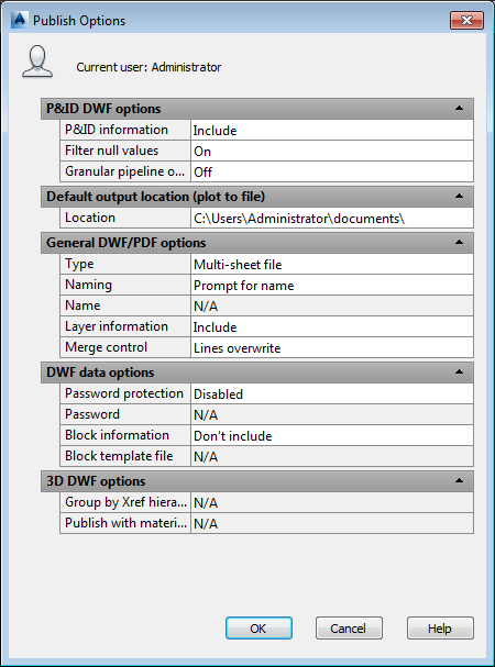 Specifies whether P&ID related data gets included with the published DWF file output.