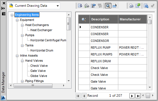 You can view, modify, import, and export drawing and project data, and generate various reports using the Data Manager.