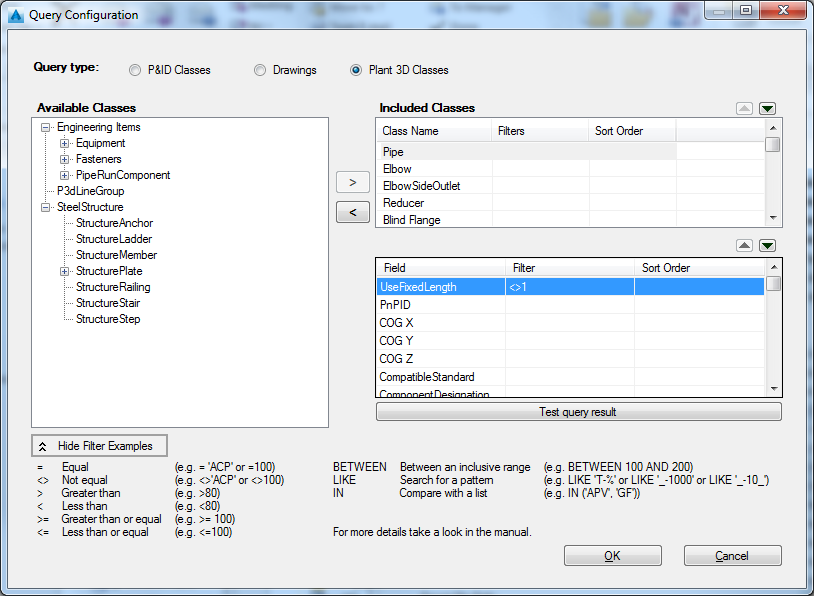 - For Query Type, click P&ID Classes, Drawings, or Plant 3D Classes.