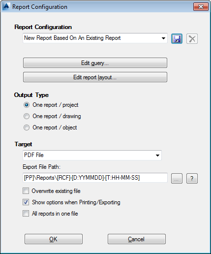 - In the New Report Configuration dialog box, click From Existing Report and select the configuration you want to modify. Click OK.
