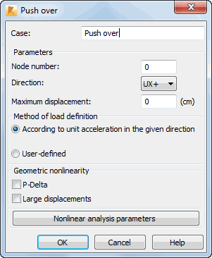 - Nonlinear analysis parameters - Opens a dialog which allows you to set up the options of the nonlinear analysis.