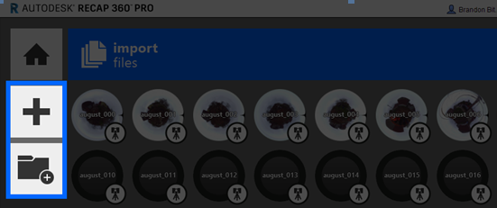 You can import additional files at any time with the Add File and Add Folder buttons on the left side of the screen: