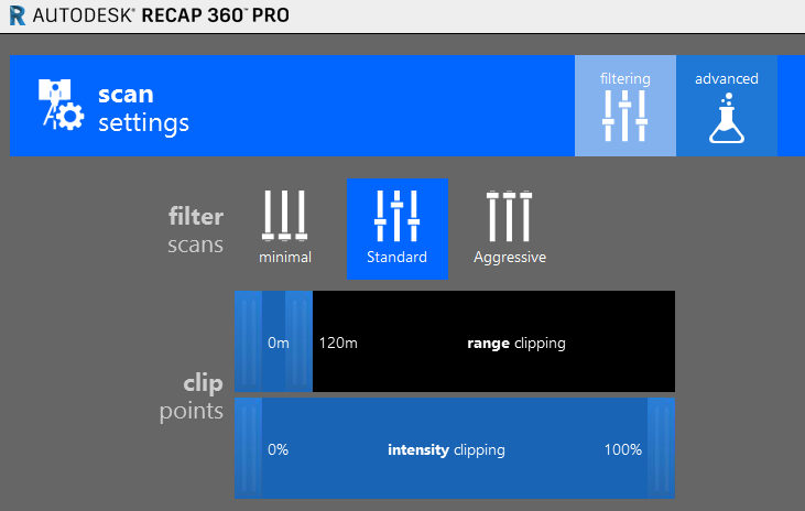 The files can be either traditional scans from a fixed location (structured files), scans from multiple locations, such as those produced by a UAV (unstructured files), or a mixture of both. The scan data type will be reflected by a badge on the individual scan thumbnail: