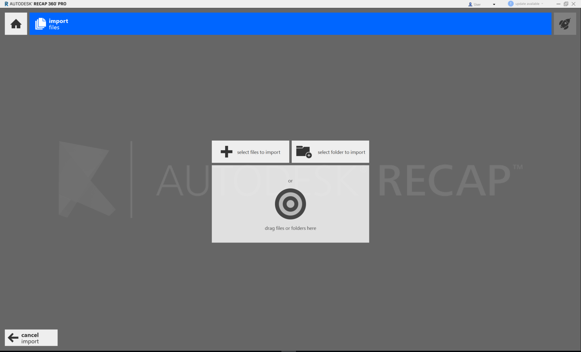 Once the settings are selected, the import process begins automatically. All files must be imported before Auto Registration begins. Manual Registration is available as soon as the first scan has been imported. Note that manual registration cannot be started with unstructured data. For best results a structured scan must be used as the basis for registration.