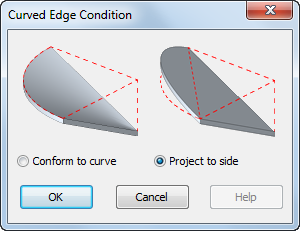 - Select either Conform to curve for a scalloped surface, or Project to side for a flat surface.
