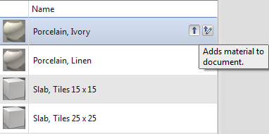 To add a material to the current project, first find the material in an existing library, then use one of these methods: