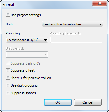 The Use project settings option is selected by default. This means that the value displays according to the Units setting in the project.