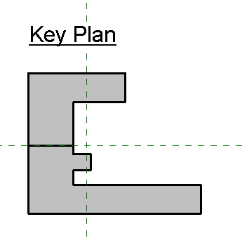 A key plan for a project is created with a generic annotation family. Place the generic annotation onto a sheet or a view where a key plan is needed. The example family contains lines making up the footprint of the building and filled regions connected to visibility parameters so the different shaded portions of the key plan can be turned on and off.