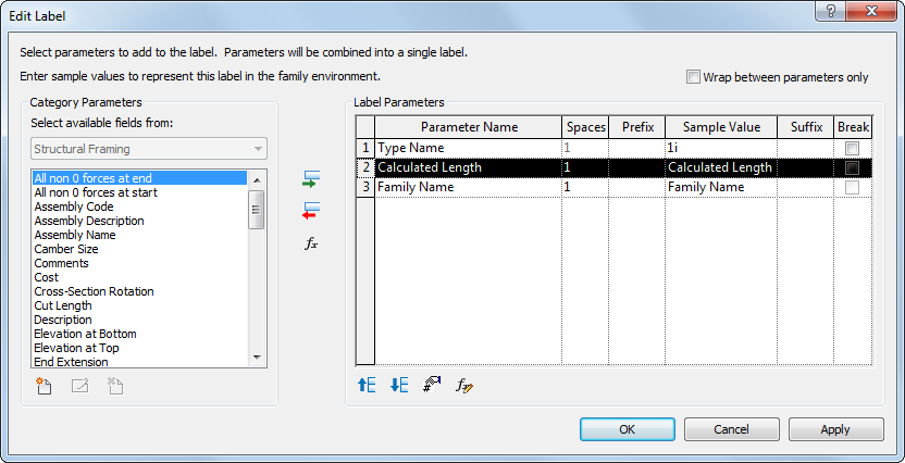 You assign single or multiple parameters to labels with the Edit Label dialog.