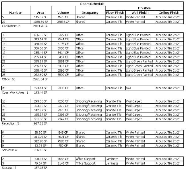 You can create a schedule at any point in the design process. As you make changes to the project that affect the schedule, it automatically updates to reflect those changes. You can add a schedule to a drawing sheet.