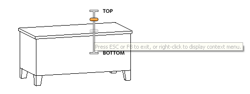 The Vertical Distance indicator has two marks that show the highest (Top) and lowest (Bottom) elevation the view can have. When you are changing the elevation with the Vertical Distance indicator, the current elevation is shown by the bright orange indicator, while the previous elevation is shown by the dim orange indicator.
