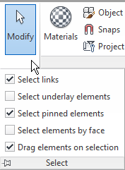 If the ability to select links and their elements interferes with your ability to select elements in the project, disable this option. When Select Links is disabled, you can still snap and align to elements in links.