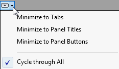 | specify the preferred method for minimizing the ribbon | to the right of the ribbon tabs, click the right arrow and select the desired behavior: Minimize to Tabs, Minimize to Panel Titles, Minimize to Panel Buttons, or Cycle through All.