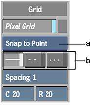 To toggle the grid on and off, click Pixel Grid. When Pixel Grid is on, use the following controls to configure the appearance and behaviour of the grid.