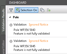 If the validation process is cancelled or delayed, or auto validation is disabled, all of the features that are not validated will have ignored notices on Validation Results palette (if "Ignored Notices" is set to show).