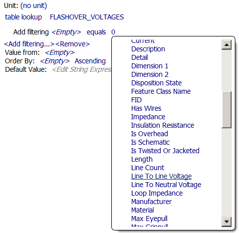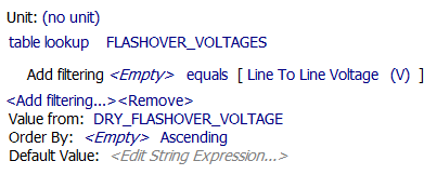 Empty and then click the table column containing the value of interest. In this example we use Dry_Flashover_Voltage.