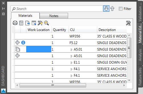 - Material Editor—As you create features, the Material Editor generates a dynamic material list. For more information, see About Material Lists.