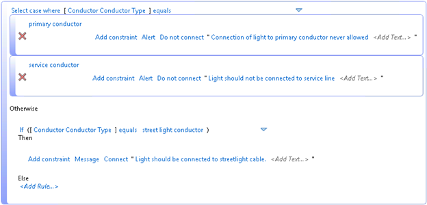 For example, following procedure defines streetlight conductor is allowed to connect to streetlight conductor but not primary or service conductors.