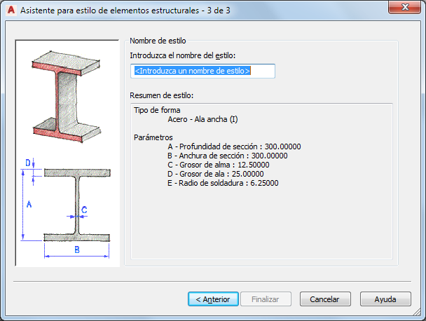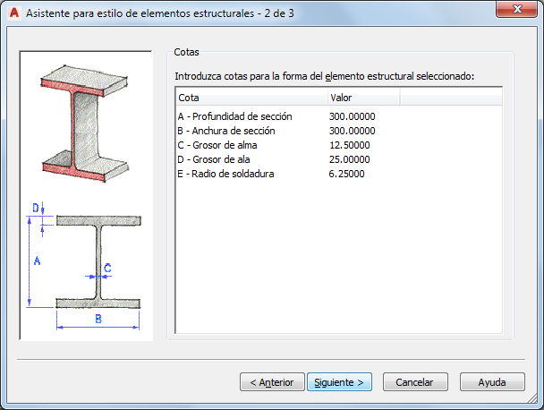 Utilice este procedimiento para crear un estilo de elemento estructural con el Asistente para estilo de elementos estructurales. Puede crear una forma de elemento estructural dentro del estilo que se base en cualquiera de los diecinueve tipos de formas diferentes del Catálogo de elementos estructurales. Las unidades de dibujo actuales determinan las unidades del estilo que cree.