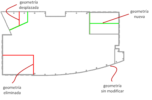 Puede comparar visualmente los cambios de la geometría entre dibujos o versiones de un dibujo. Un conjunto de colores preasignados distingue los objetos recién añadidos, eliminados, modificados (por ejemplo, desplazados o cuyo tamaño se ha cambiado) o sin modificar. El resultado de la comparación visual entre versiones de un dibujo se muestra en un nuevo dibujo, mientras que el resultado de la comparación entre dos dibujos se muestra en el dibujo actual.