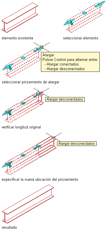 Cambio de longitud de un elemento estructural de viga mediante pinzamientos