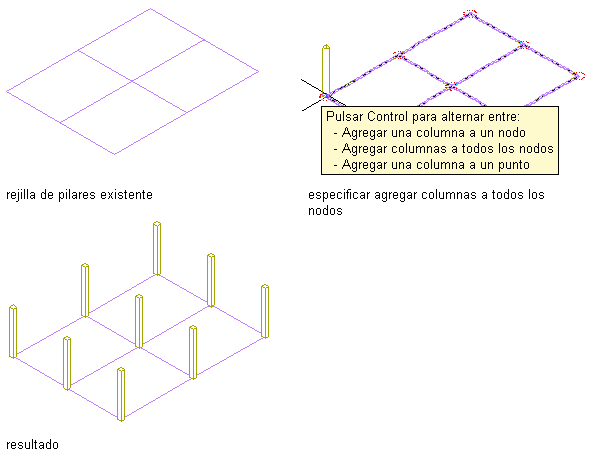 | agregar un pilar a todos los nodos de la rejilla | pulse Ctrl y haga clic. |