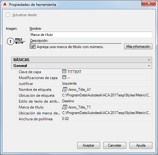 Ubicación del título | General | Configura el archivo de dibujo o plantilla donde residirán los símbolos de título disponibles. |