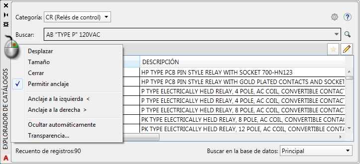AutoCAD Electrical utiliza paletas para administrar los proyectos y para trabajar con la base de datos de catálogo. Una paleta puede permanecer en la pantalla mientras se utilizan otros comandos. De este modo, está accesible siempre que la necesita.
