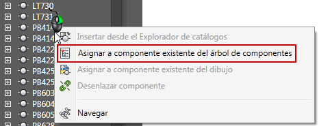 En la ficha Vista de posición, haga clic con el botón derecho en el componente de AutoCAD Electrical o en la pieza de Inventor en la vista de árbol y haga clic en Asignar a componente existente del árbol de componentes.