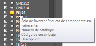 Busque y seleccione la otra representación en el árbol. En este ejemplo, dado que he comenzado con el componente de AutoCAD Electrical, selecciono el pulsador de Inventor.
