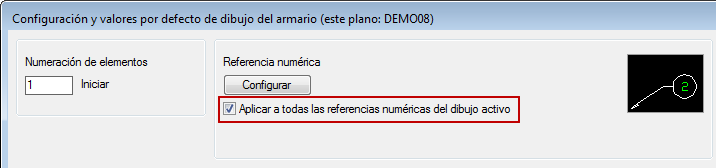 Si cambia la configuración de la referencia numérica del dibujo en Configuración de dibujo del armario, ya podrá actualizar referencias numéricas existentes.